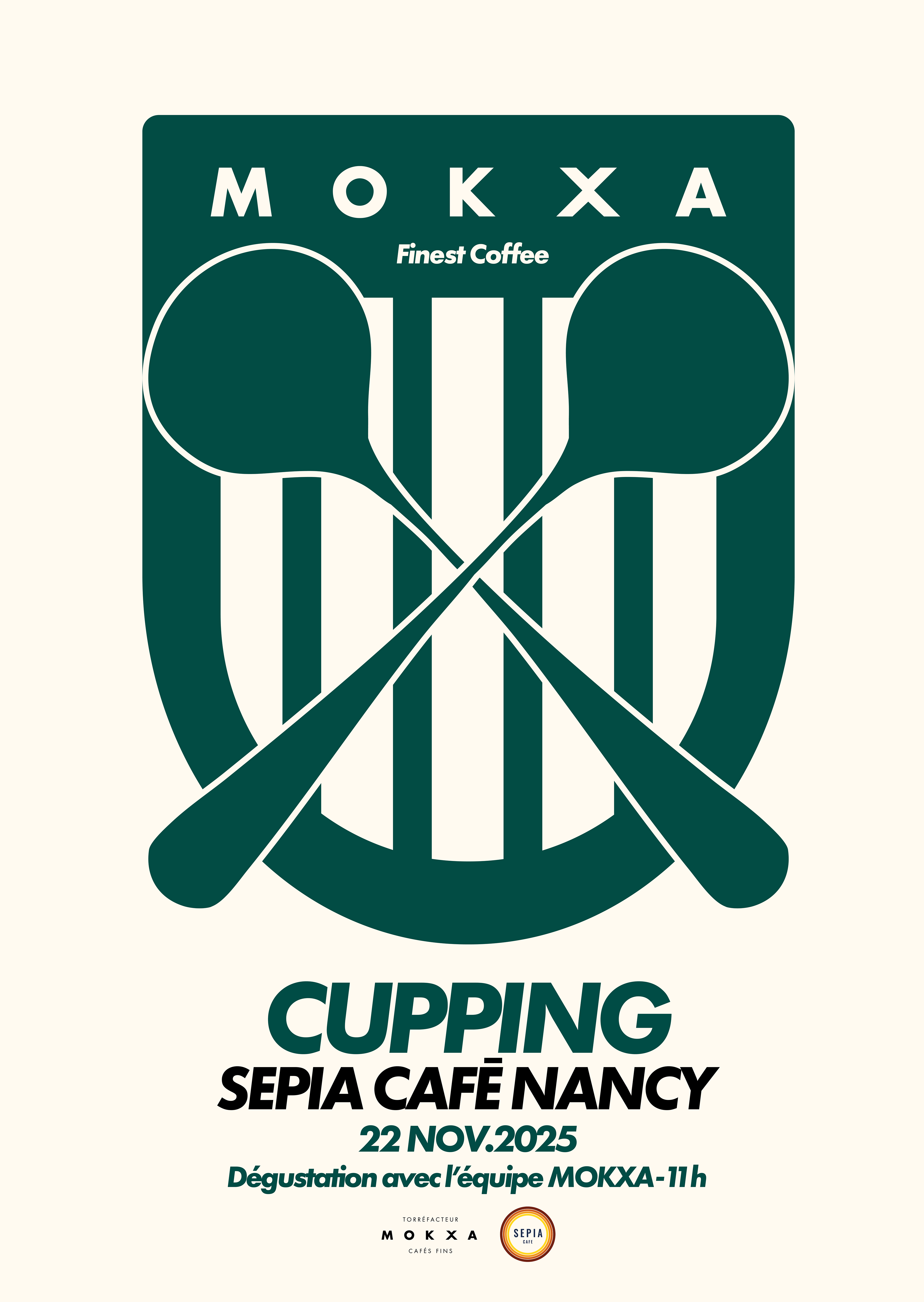 Création d'identité visuelle pour des événements de dégustation de café sous forme de "cupping" pour la marque de café de spécialité strasbourgeoise Mokxa.