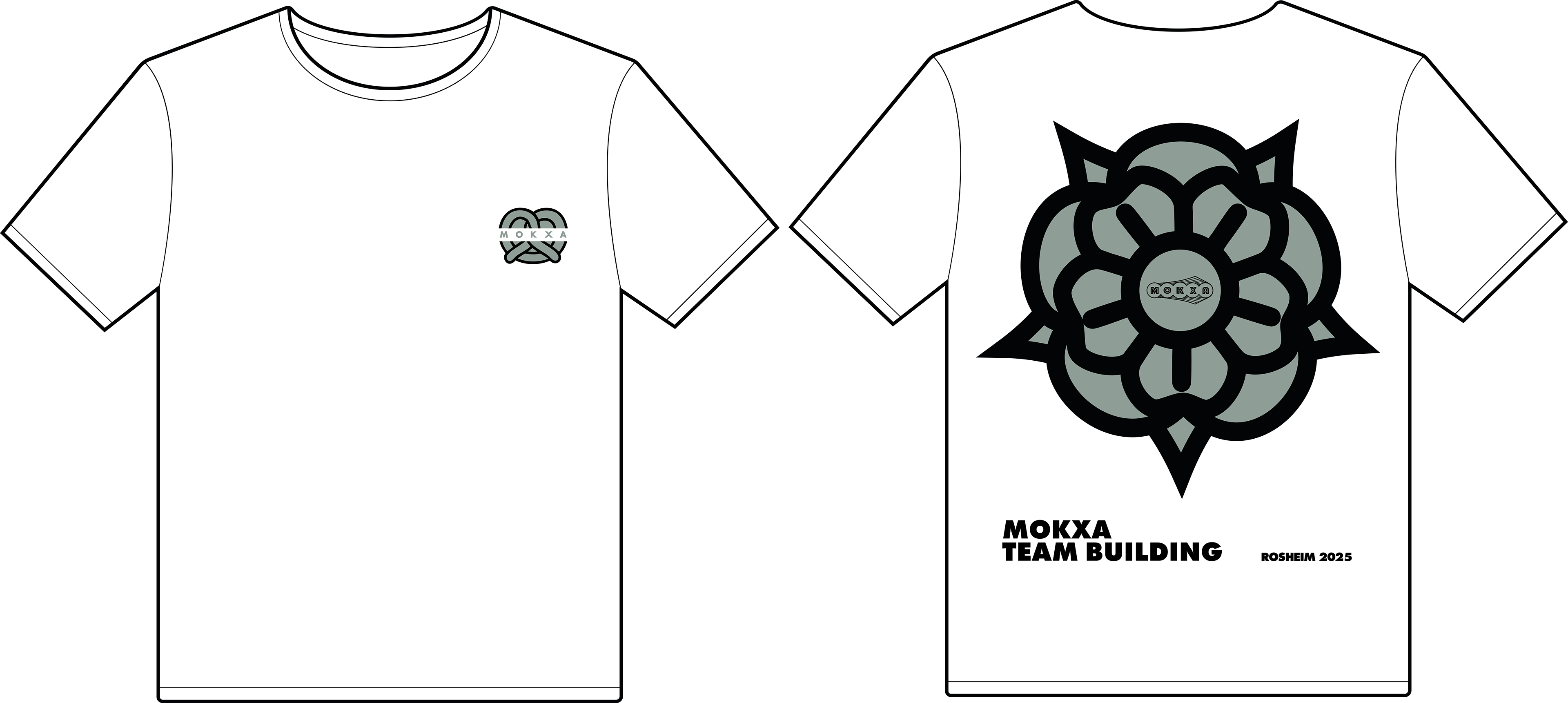 Création de visuels pour les t-shirts du team building Mokxa 2025 se passant à Rosheim, reprenant le balson du village